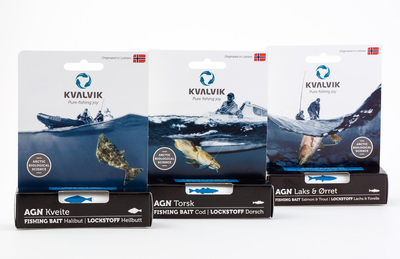 Atraktory KVALVIK to specjalny rodzaj atraktorów zanętowych, których głównym zadaniem jest zwabienie konkretnego gatunku ryby – dorszów, troci, łososi lub halibutów. Produkty te poprawiają skuteczność przynęty i zwiększają szanse na złowienie naprawdę dużego okazu. Co ważne, atraktory KVALVIK to produkty powstające z naturalnych materiałów, które są w pełni ekologiczne, nie zatruwają wód i rozkładają się biologicznie.