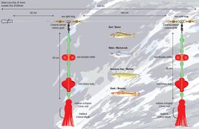 - Kiedy ryby nie biorą, wart stopniowo przeczesywać różne partie wody nad dnem- wystarczy zakręcić kilka razy korbką, odczekać kilkanaście sekund, i znowu zakręcić, aż znajdziemy się ok. 30m nad dnem. Wówczas należy pozwolić zestawowi opaść do dna i powtarzać, aż doczekamy się brania! Pamiętajcie ,że zestaw posiada zaokrąglone, samozacinające haki - nie należy silnie zacinać, lepiej pozwolić rybie dobrze połknąć przynętę- zatnie się sama!